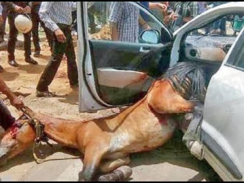जयपुर के हसनपुरा में किसी तांगेवाले ने अपना घोड़ा सड़क किनारे रस्सी से बांधा था। घोड़े के मुंह में चारे की पोटली भी बंधी थी ।गर्मी इतनी तेज थी की घोडा बर्दास्त नही कर पाया और रस्सी तोड़कर भागने लगा । घोड़े के मुंह में बंधी चारे की पोटली की वजह से वह सामने का कुछ देख नही पा रहा था, जिस कारण घोडा कार के शीशे को तोड़ते हुए सीधे कार के अंदर जा घुसा ।इसके बाद लोगो ने उस घोड़े को कार से निकालने की कोशिश की पर निकाल नही पाए ।बाद में वन विभाग के अधिकारीयो ने घोड़े को बाहर निकाला,