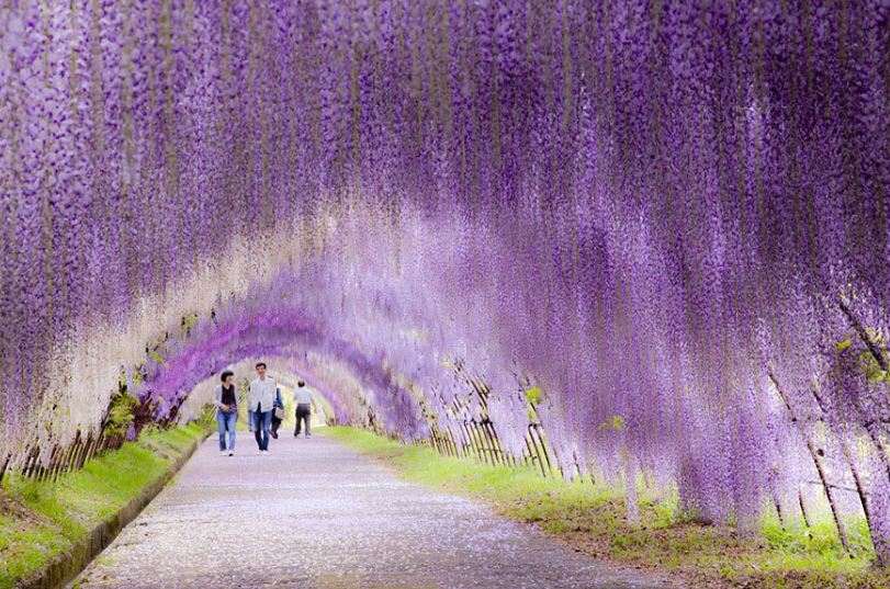 8. Wisteria Flower Tunnel जापान की इस सुरंग में घुसकर आपको ऐसा लगेगा मानो आप के ऊपर फूलो की बरसात हो रही है।