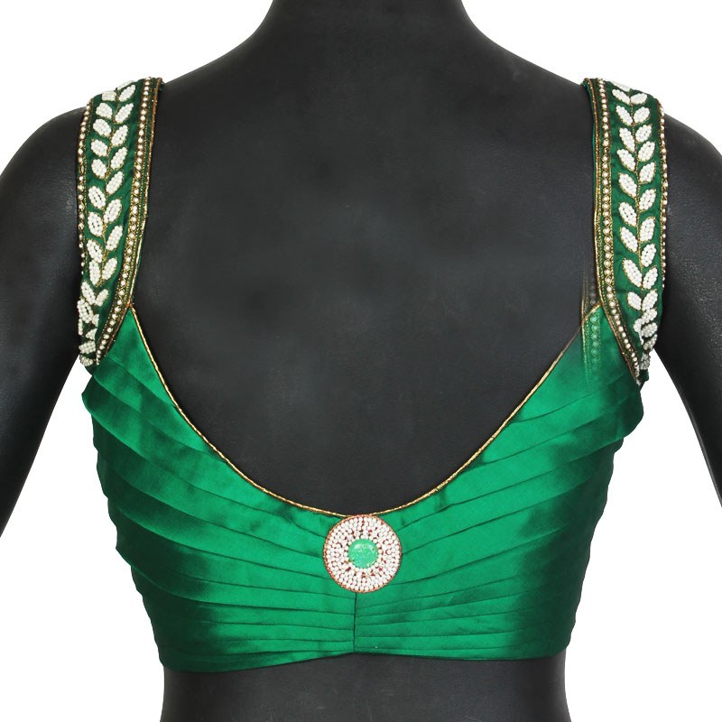 साड़ी के पल्लू में करे प्लेट्स स्टाइल में सिलाई इस स्टाइल से यह होगा की पल्लू की जो चौड़ाई है वो थोड़ी कम हो जाएगी अब क्या करे प्लेट्स में बिट्स लगा दे ताकि साड़ी और खुसुरत बन जाए इस तरह साड़ी पर किया गया वर्क पल्लू में प्लेट्स के पीछे से देखने पर प्लेट उसे देगा डिज़ाइनर लुक अगर ब्लाउज पर भी यही तरीका अपनाया जाए तो फिर बात ही क्या अलग ही लुक झलक उठेगा